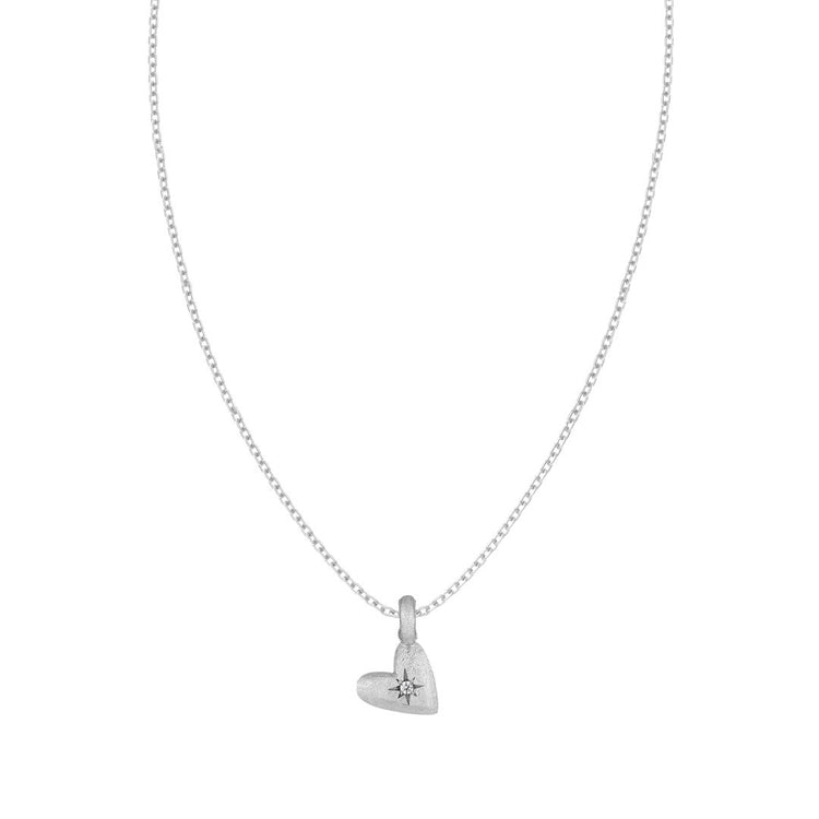 The Stella Brushed Sterling Silver Heart Necklace features a beautifully crafted brushed sterling silver heart pendant with a convenient clip at the back of the charm, allowing for easy removal. A unique piece that works with any outfit.