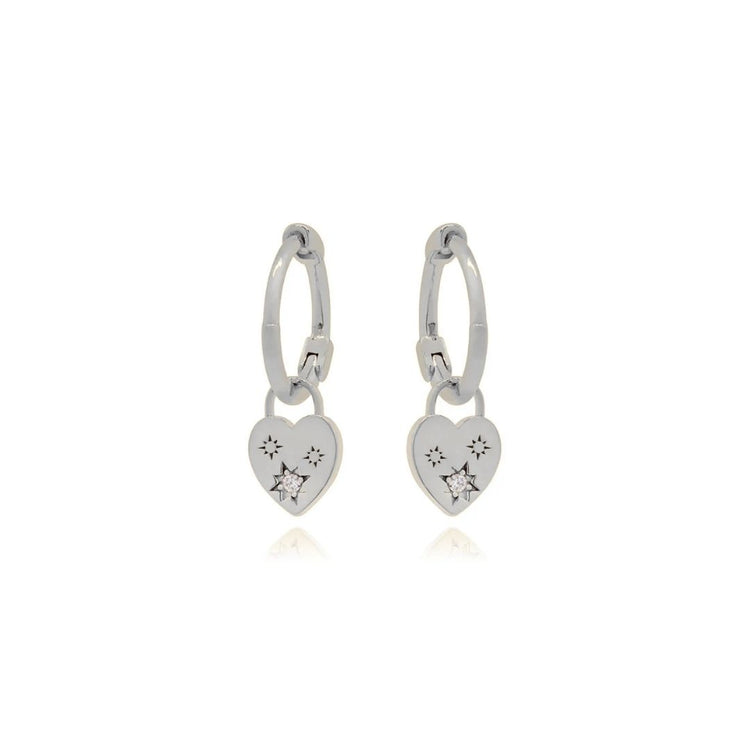 Add a touch of romance to your everyday look with these stunning Yasmin Heart Earrings. Featuring a delicate heart charm suspended from a classic hoop, and beautifully inlaid with sparkling cubic zirconia. Also available in gold.