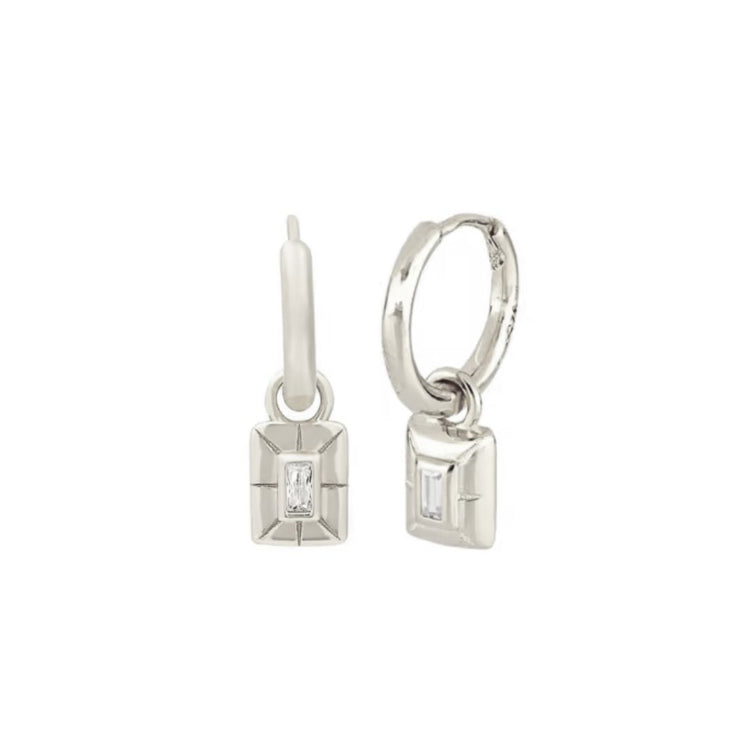 Discover the elegance of the Zara Earrings in Silver, designed to make a subtle yet striking statement. These hoops showcase a distinctive rectangular-shaped charm, centered with a sparkling cubic zirconia that catches the light beautifully. Make them a staple in your collection and experience the confidence that comes with wearing thoughtfully crafted jewellery. Also available in gold.