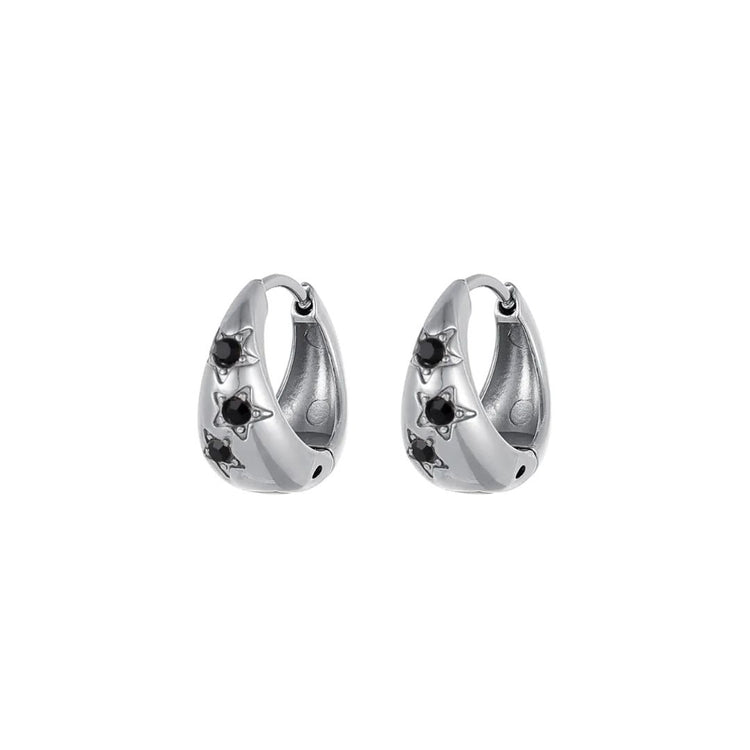 Thoughtfully crafted in water resistant stainless steel, these hoops feature delicate star-shaped cubic zirconia insets on one side. Also available in clear and multicolour.